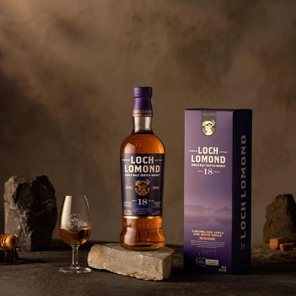 Le whisky single malt Loch Lomond 18 ans d’âge offre une expérience de dégustation pleine de gourmandise avec ses notes marquées de pommes cuites au four et de caramel fumé.